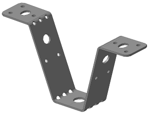 Кронштейн V-образный из оцинкованной стали 08 ПС, толщиной 2мм. Диаметр центрального отверстия 8,5мм. Наличие перфорации на кронштейне позволяет его закреплять на круглых воздуховодах с помощью саморезов.